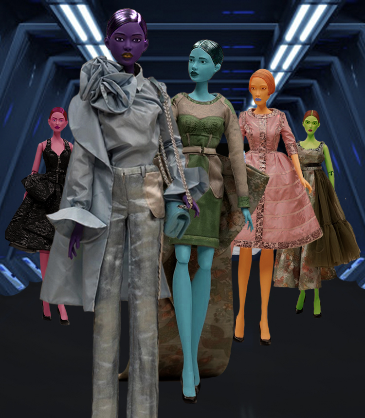Manual or digital manipulations (some are edited from brand campaigns - Moschino, Prada, Bimba y Lola,...)